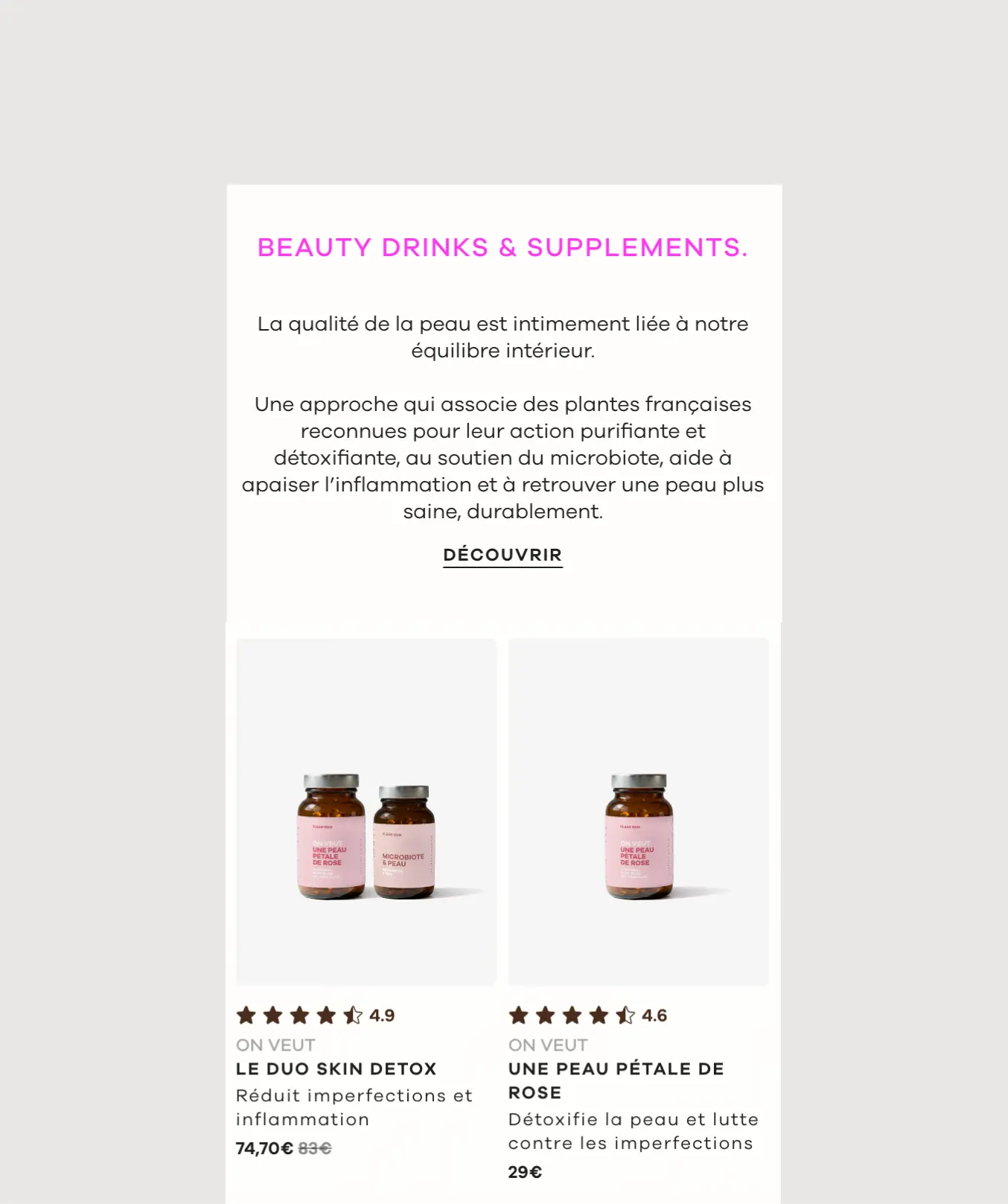 Nourrir la beauté, jusque dans l’expérience digitale. Conception et design du nouvel eshop d’atelier nubio En collaboration avec les équipes Atelier Nubio. nous avons repensé l’architecture et le parcours pour clarifier l’offre et accompagner la découverte des compléments naturels. Fiches produit immersives, colorées, storytelling renforcé, hiérarchie plus lisible : une expérience e-commerce qui traduit la sensorialité et l’exigence du made in French terroirs.